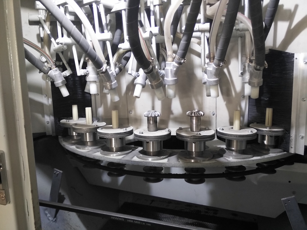 在精鍛齒輪生產過程中有兩次清理過程,第一次拋丸強化清理,第二次噴砂清理,針對汽車精鍛齒輪特點昆航科技研發自動轉臺式連續行進噴砂機,工件連續行走,至噴砂區后自動旋轉,噴槍固定噴砂,效率高表面均勻度高,深受客戶好評!