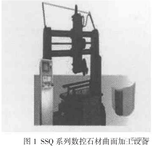 圖1為山東大學(xué)石材工程技術(shù)研究中心研制的SSQ系列數(shù)控石材曲面加工設(shè)備。該設(shè)備采用了可靠的三坐標(biāo)數(shù)控系統(tǒng),刀具軸水平布置,鋸片或磨輪垂直切割。該設(shè)備可加工任意曲率、形狀的內(nèi)、外曲面。